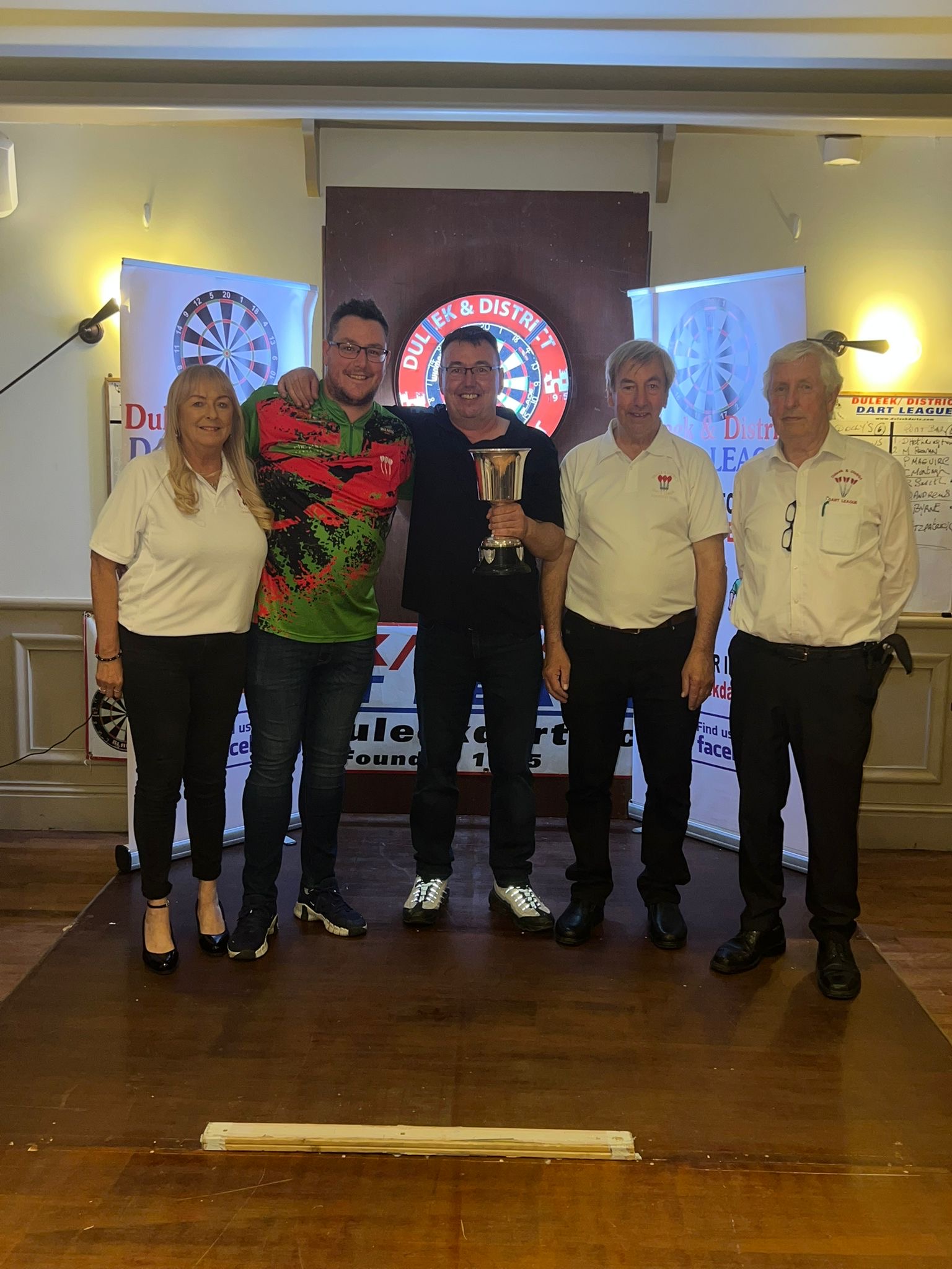 Photo 1 - Premier League 2022/2023 Winners - Mariner, Drogheda. Photo 2 - Premier League 2022/2023 Runners-Up - The Lantern Bar, Navan. Photo 3 - Cup Presentation includes, Paula Kearney, Mark Clinton, Ollie Thompson, Robert Smith and Ian Lowhte. Photo 4 - Man of the Match - Gary Phipps, Mariner with Committee members Paula Kearney and Ian Lowthe. Photo 5 - Committee - John Mc Keown - Paula Kearney - Pat O Brien - John Grimes - Ian Lowthe. |